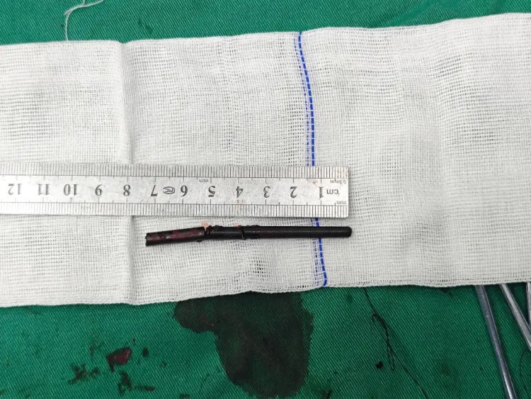 颈部血管神经密集,异物稍有不慎就会造成血管神经损伤,一旦出血,患者生命危在旦夕。王忠厚介绍,为了最大程度减小损伤,术中团队决定先将较长的异物分段取出。取出异物后,医护团队没有丝毫放松,密切观察患者有无出血症状。幸运的是,手术取得了成功。